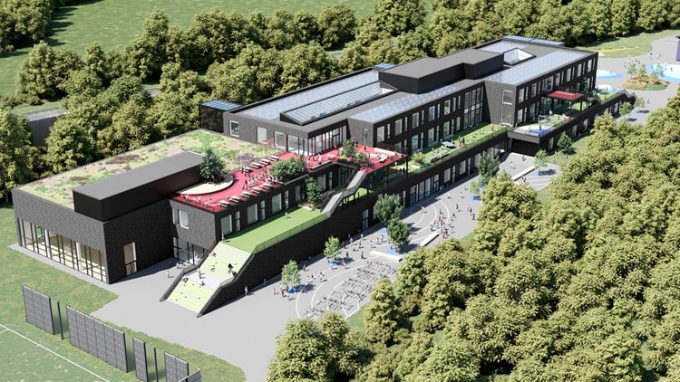 The new school will include a primary and secondary school, international school and a preschool. The school will be three storeys totaling 11,600 m² in a module-like structure with roof terraces. This way, the building can be split up or expanded in the future as necessary. The building will be DNGB certified at the Gold level.
