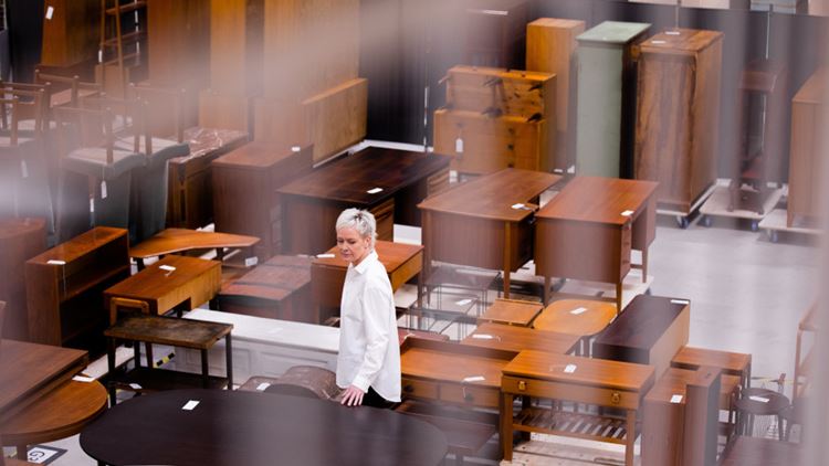 – Vi förstod snabbt att här skulle vara perfekt för oss, och jag tänkte ”kan jag verkligen ta första bästa lokal jag tittat på?”. Men förutsättningarna här var bara för bra för att tacka nej till, säger hon.Det är viktigt att lokalen ska kunna ha ett bra flöde, förklarar Maria. Möbler och föremål ska kunna tas emot, flyttas vidare in i huset och förvaras smidigt, fotograferas för att kunna läggas ut till försäljning online, förvaras i väntan på köpare och till sist hämtas upp eller fraktas i väg. Det där flödet har Maria och hennes kollegor kunnat få till på ett riktigt bra sätt på Boplatsen.